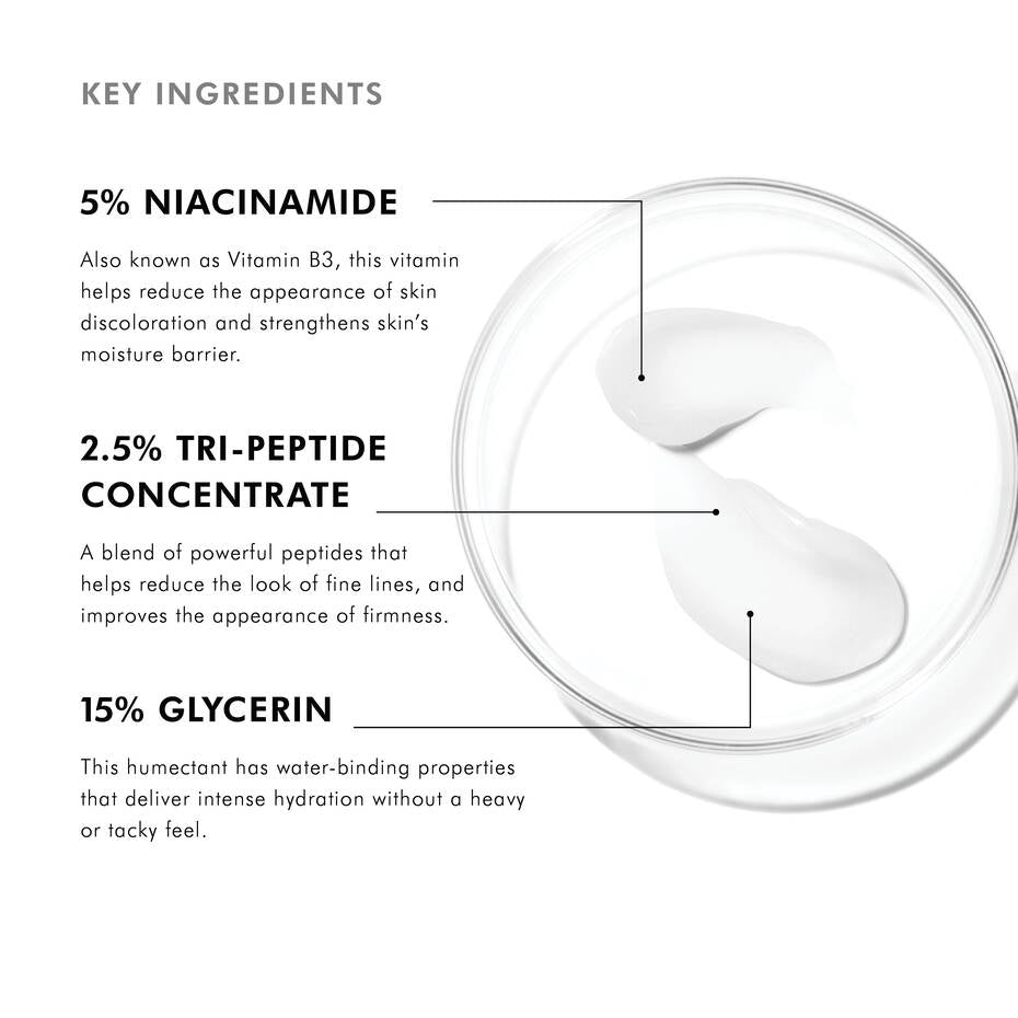 2.5% Firming Tri-Peptide concentrate: A blend of powerful peptides helps maintain skin’s natural hyaluronic acid levels, reduces the look of fine lines, and improves the appearance of firmness